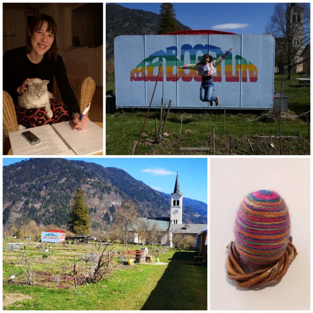 Bei wunderschönem Wetter zeigte mir Silvia die Flächen des Regenbogenlands. Im Vordergrund links unten sieht man den interkulturellen Garten, dahinter die evangelische Kirche. Einen Vormittag durfte ich auch bei einem "ReBoLa macht Schule"-Workshop zum Thema "Hühner und Eier" mitkommen, passend kurz vor Ostern. Herzlichen Dank an die Interviewpartner*innen für die interessanten Gespräche!